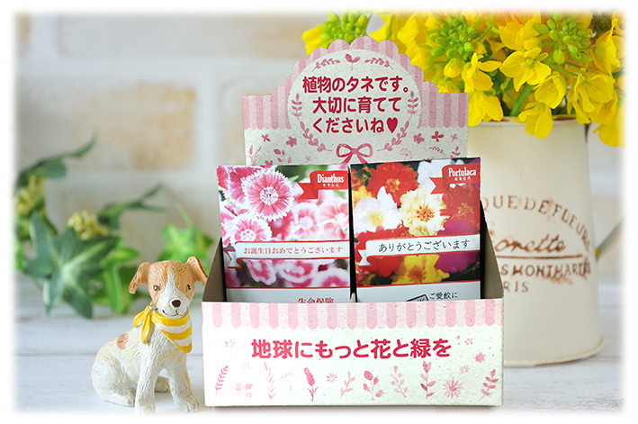 「広告入り種子」をご注文いただいたお客様へ、ささやかではありますが「ディスプレイボックス」を1セット進呈いたしております。