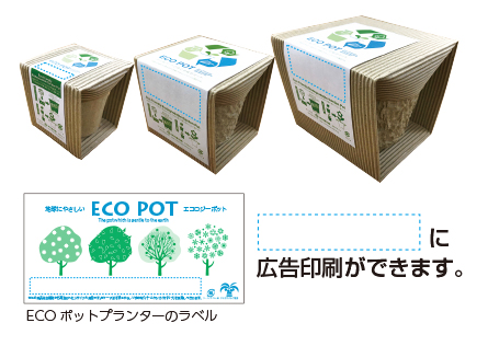 ECOポットのラベルシールの一つの面に広告印刷ができます。