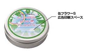 缶フラワーSは上フタのシールに広告印刷(縦11×横35mm)ができます。