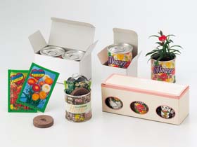 缶フラワーMは広告印刷シールS(縦33.9×横43mm)・缶フラワーLは広告印刷 中シール(縦40×横50mm)を缶に貼ることができます。